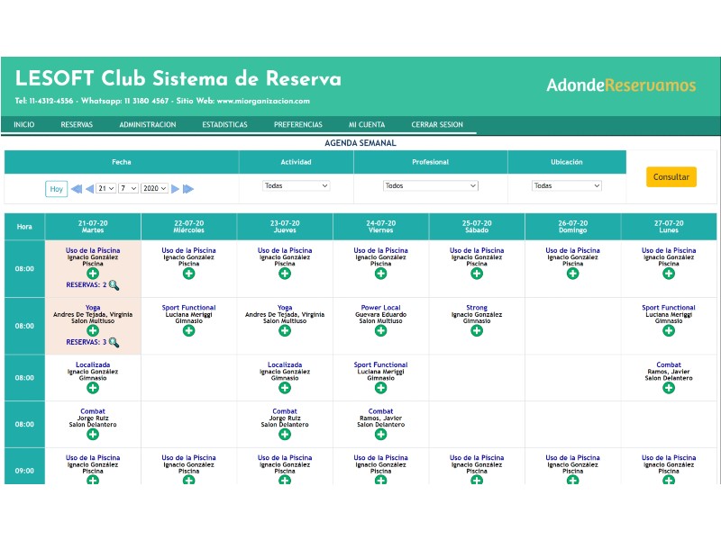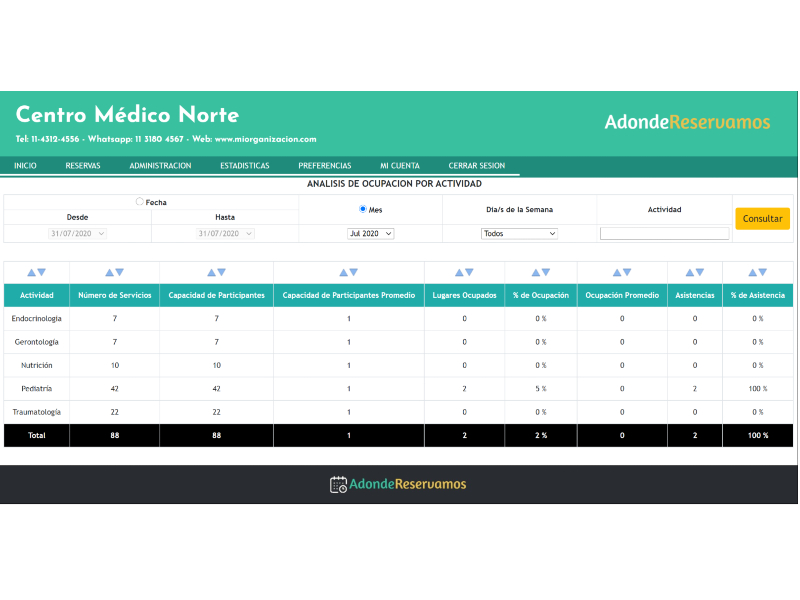 La plataforma te ofrece un kit completo de estadísticas de reservas pero también de los servicios que tu ofreces. Estos datos incluyen análisis por dia de la semana, por período, por rango horario con múltiples filtros por actividad, ubicación física, etc.